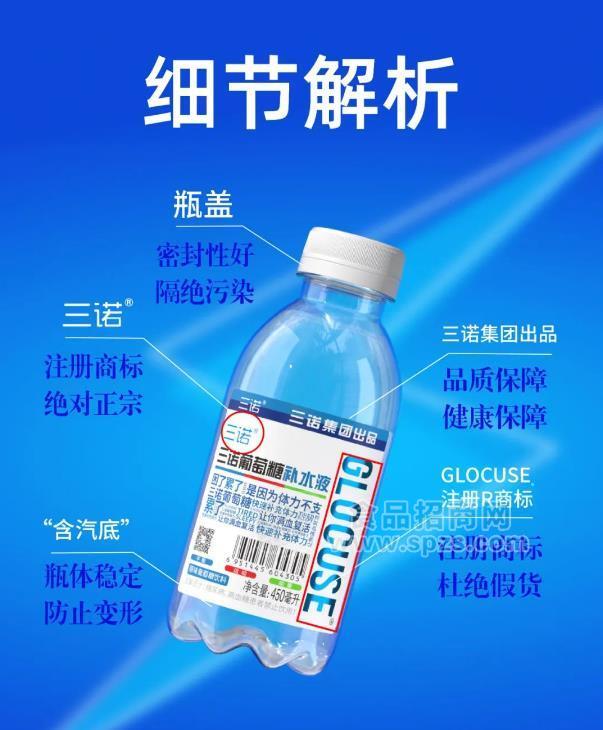 再次提醒广大消费者:一定要购买正宗葡萄糖补水液,认准瓶体“三诺集团”的授权标识,产品名称里“三诺”注册商标®标识。