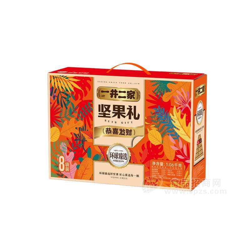 公司主要产品有:休闲零食(坚果,水果干,FD冻干,肉脯等等)现已在全面推广市场,诚邀各位加盟!一井二家发展历程2016年1月,一井二家团队初创2016年3月,鲜柚燕窝研发成功2016年5月,养蜂汉子系列蜂蜜上市2017年3月,郑州万达文华酒店新品发布会,坚果系列产品上市2017年8月,坚果礼盒上市2017年11月,便携装坚果、水果干系列上市2018年3月,合作代理商达200家2018年7月、冻干系列产品上市,分享装新装上市,并开启全国市场招商进程。