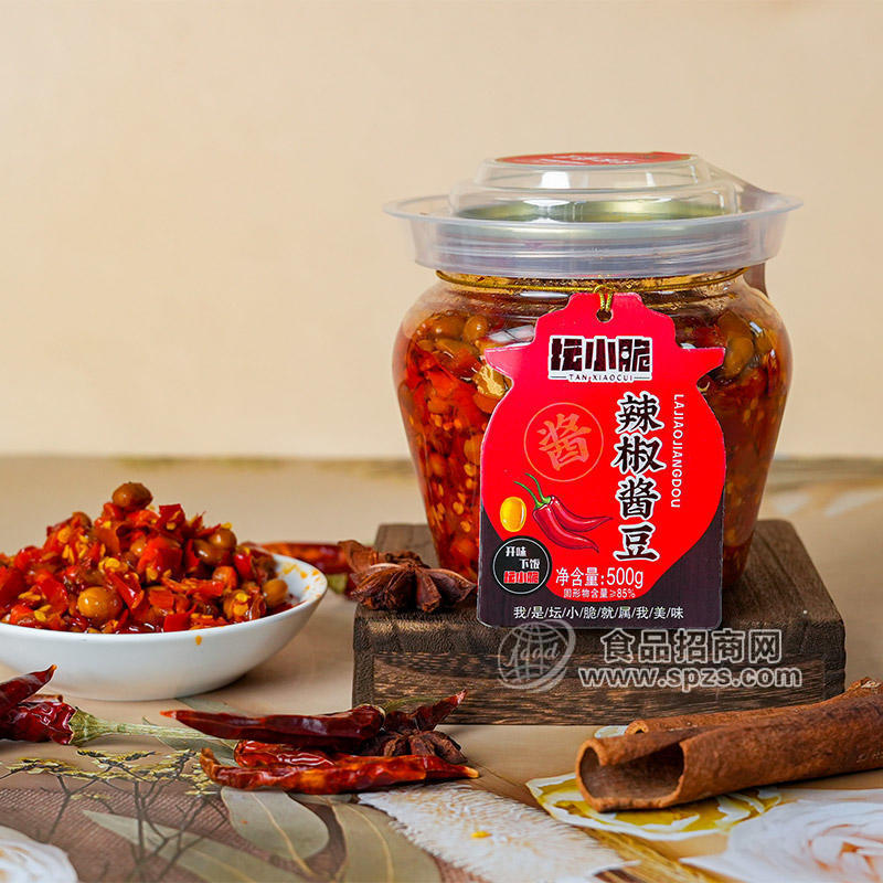 辣椒酱豆(500g):鲜辣与豆香深度融合,既能直接佐餐,又可作为蘸料、炒菜调料使用,场景适配性拉满;