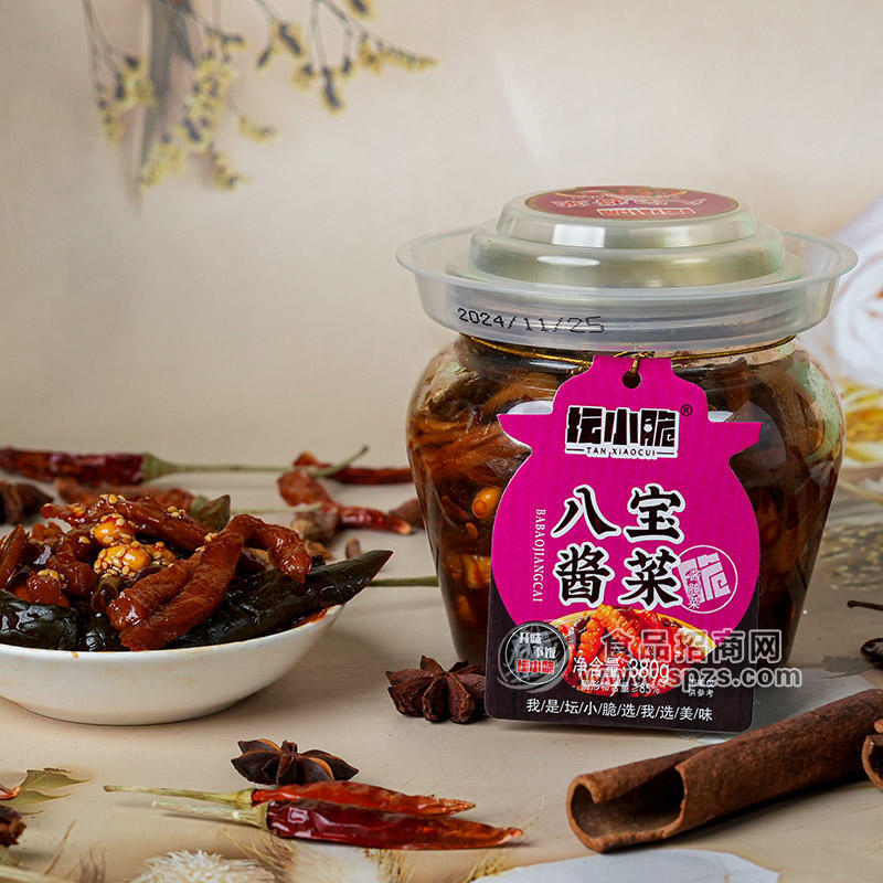 八宝酱菜(800g):融合多种蔬菜与香料,口感丰富有层次,大分量包装满足家庭囤货及多人聚餐需求,性价比优势突出。