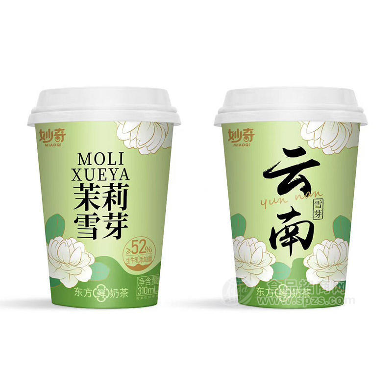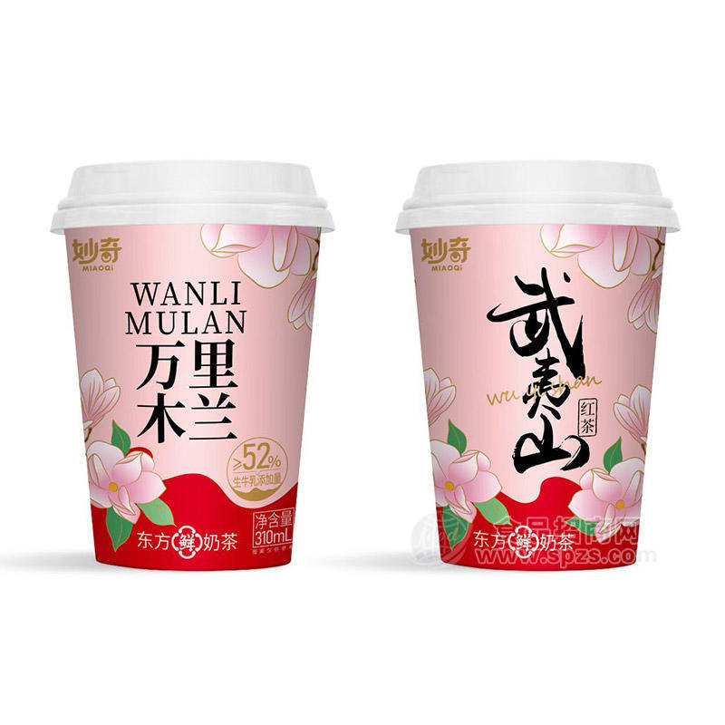 在即饮市场,包装不仅是保护产品的容器,更是无声的销售员,是决定消费者第一眼是否愿意伸手拿起的关键。妙奇东方鲜奶茶在包装设计上深谙此道,采用精美杯装形式,并以淡粉色与淡绿色作为主色调。