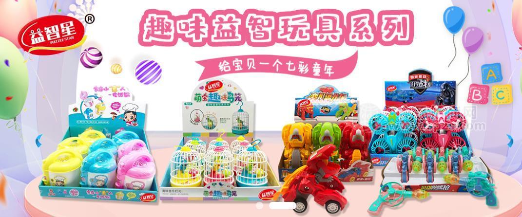 益智星精准踩中 “吃玩一体” 的需求,推出多品类糖玩组合: